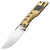 The ArtisanCutlery Beest ATZ-1878G is a premium folding knife built for enthusiasts who demand strength, precision, and style. Featuring a 3.65" drop point blade crafted from CPM-S35VN stainless steel, it delivers exceptional edge retention, corrosion resistance, and cutting performance. The knife’s titanium handle, available in gold or grey finishes, is both lightweight and durable, with a refined milled texture that enhances grip and aesthetics.