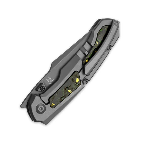 • Handle Material: Titanium with Fat Carbon “Toxic Storm” inlay (black, green, and yellow accents)