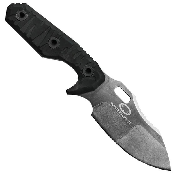 The Mammoth is beastly fixed blade from WithArmour. It features high-carbon 440C stainless steel and a kydex sheath. Weight - 1.10 lb. Blade Length - 5.00" Total Length - 10.00" Blade Material - 440C Stainless Steel Handle Material - Black Textured G-10
